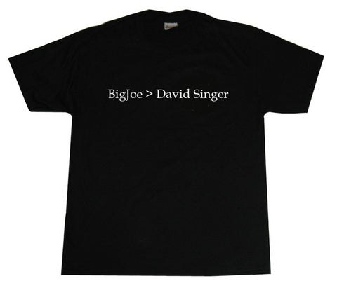 Commemorate the 2nd greatest feud in SNGIcons history with this black 100% cotton shirt. What has David Singer done? What has BigJoe NOT done? Any more questions?