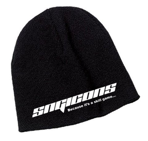 Keep your head warm with a black fleece beanie with SNGIcons logo embroidered on the front.